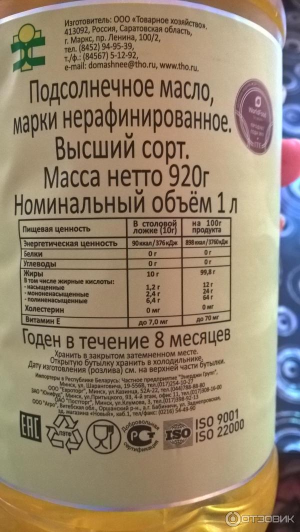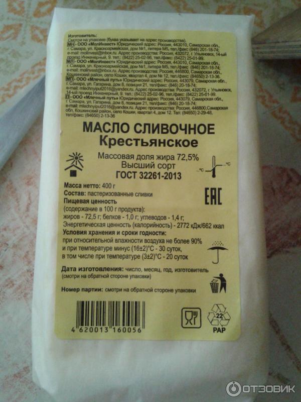 Масло домашнее состав