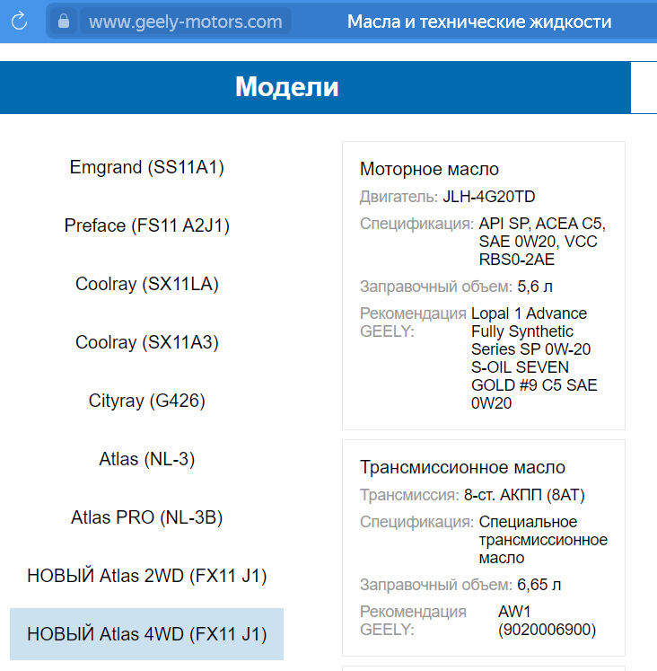 Масло джили атлас 2.0