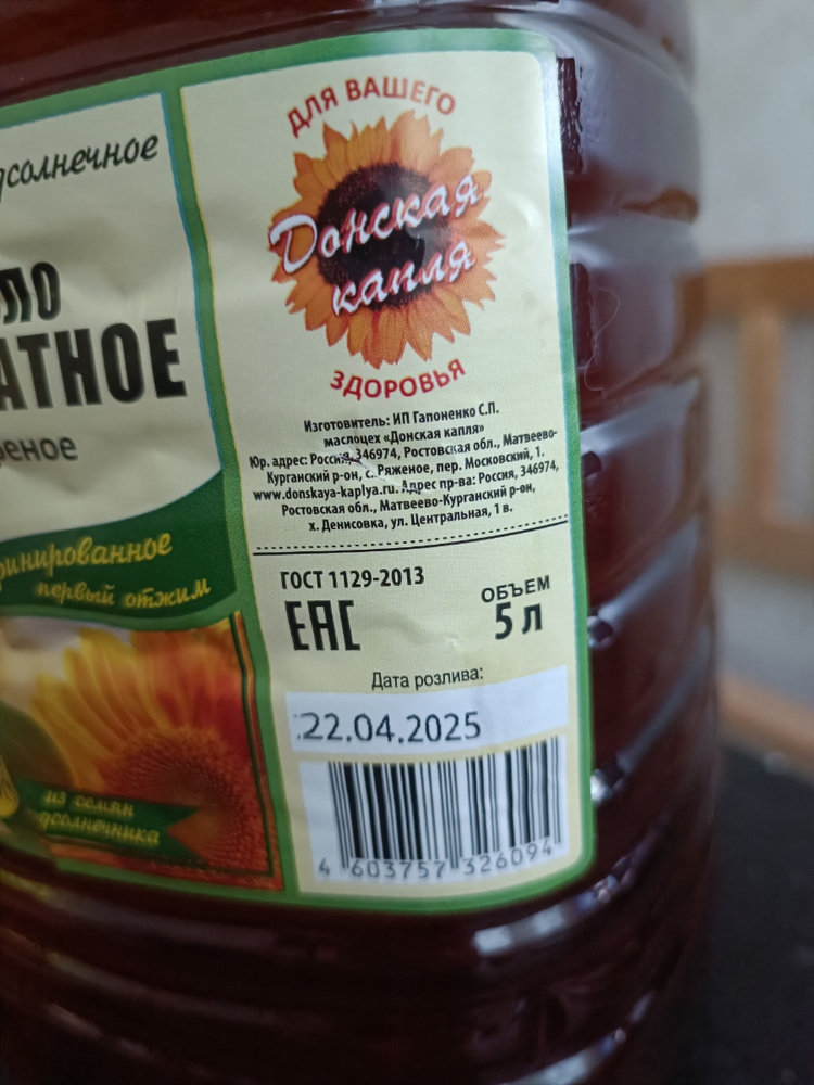 Масло подсолнечное донское 167 фото