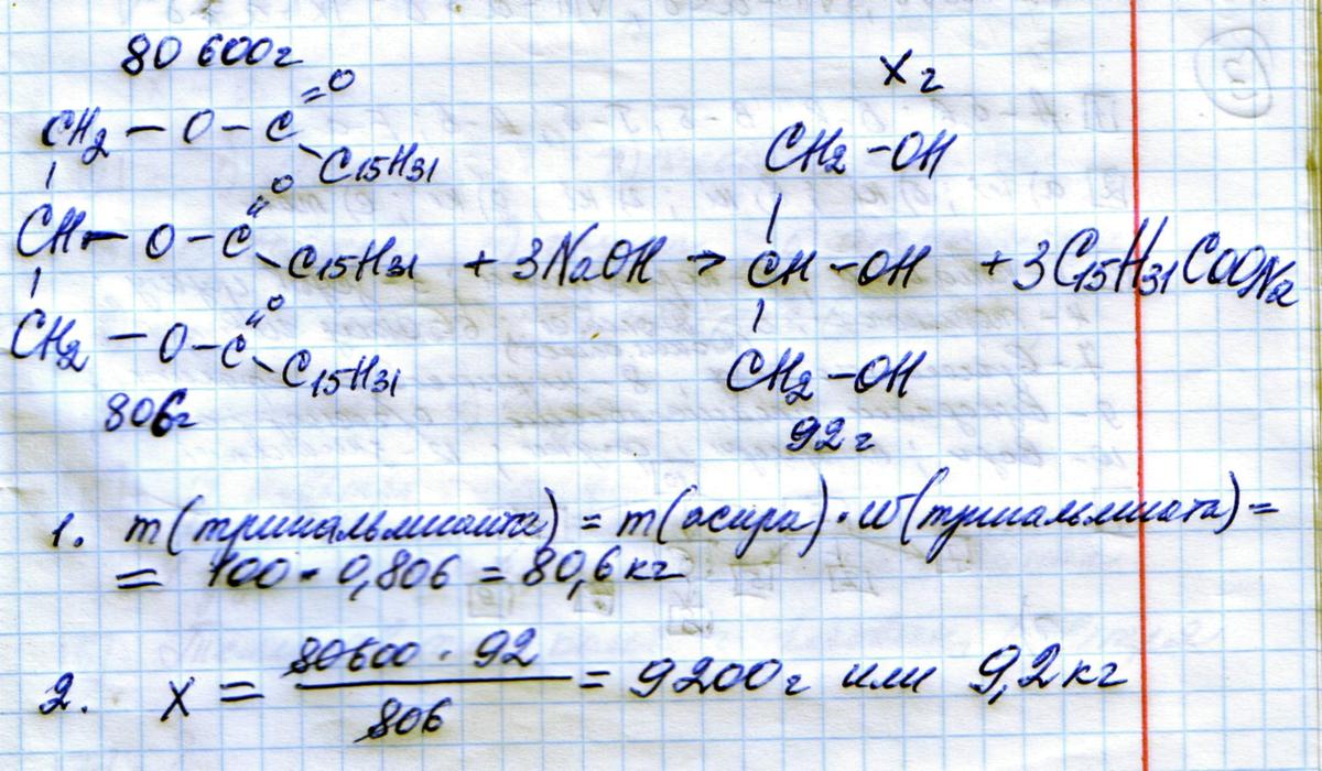 Масса глицерина в кг