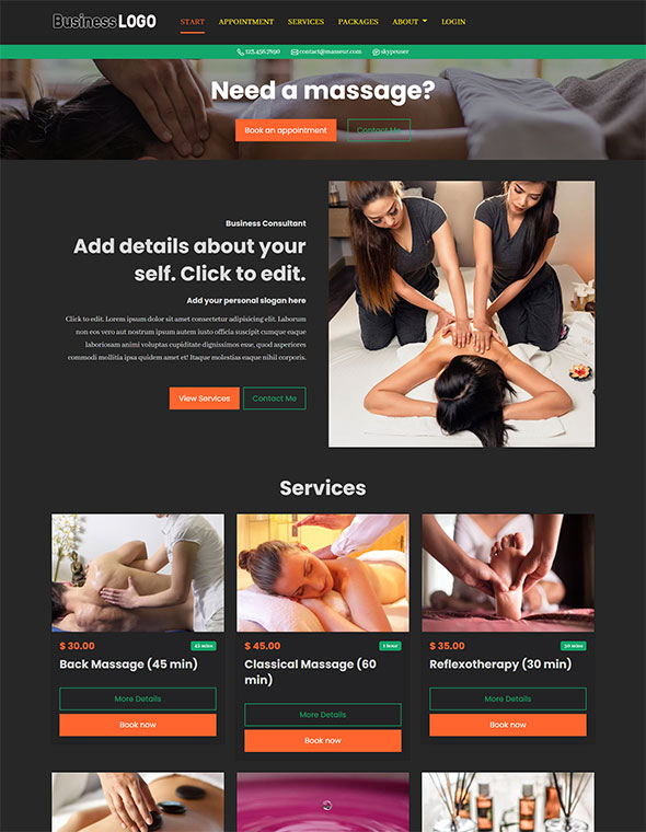 See my recommended website builders if you'd like to build your own massage therapist website.