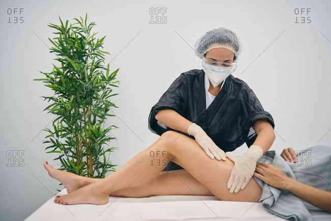 Masseuses feet sprayed