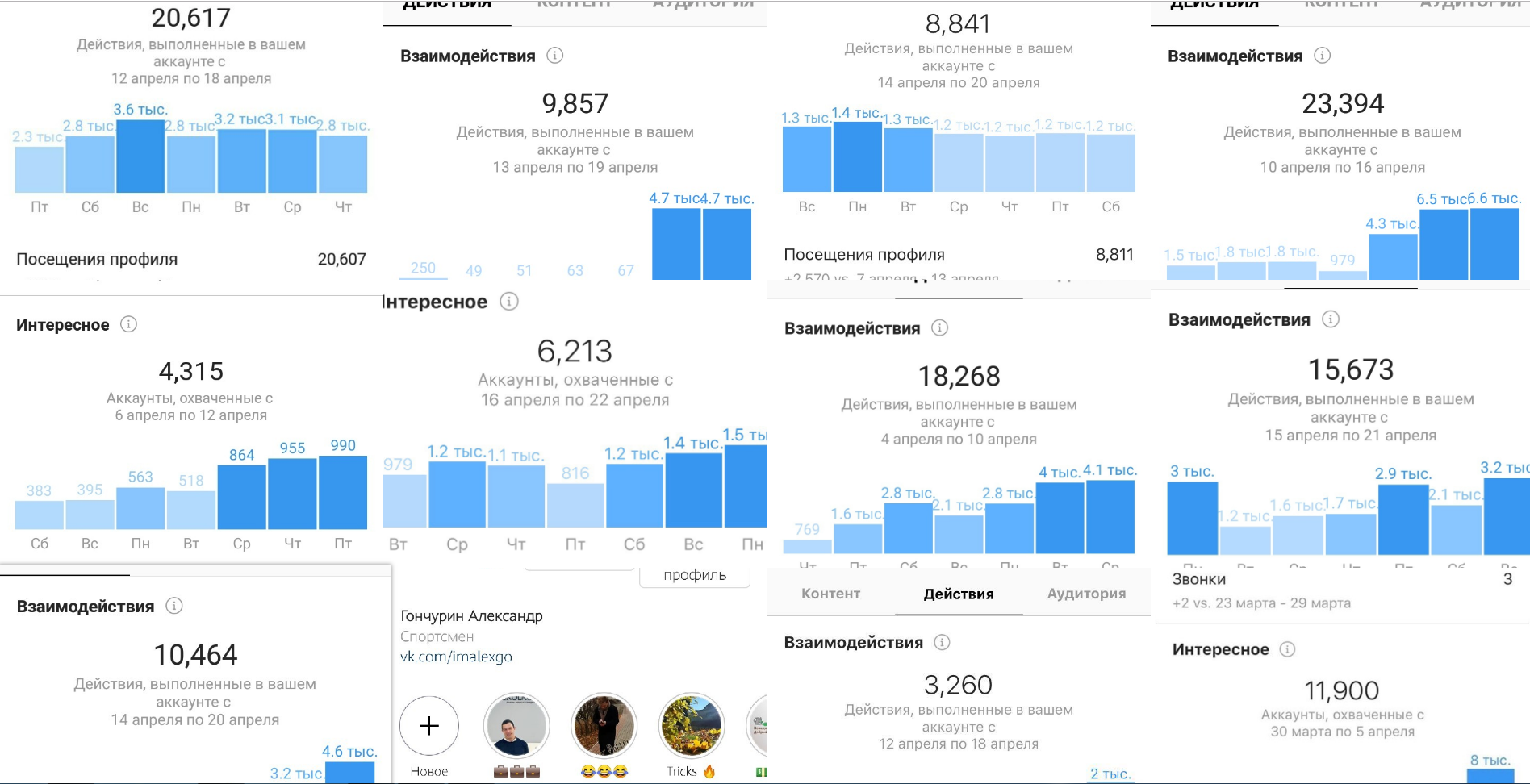 Для затравки оставлю пару скриншотов статистик аккаунтов, которые ребята разгоняют за несколько дней работы по данному методу