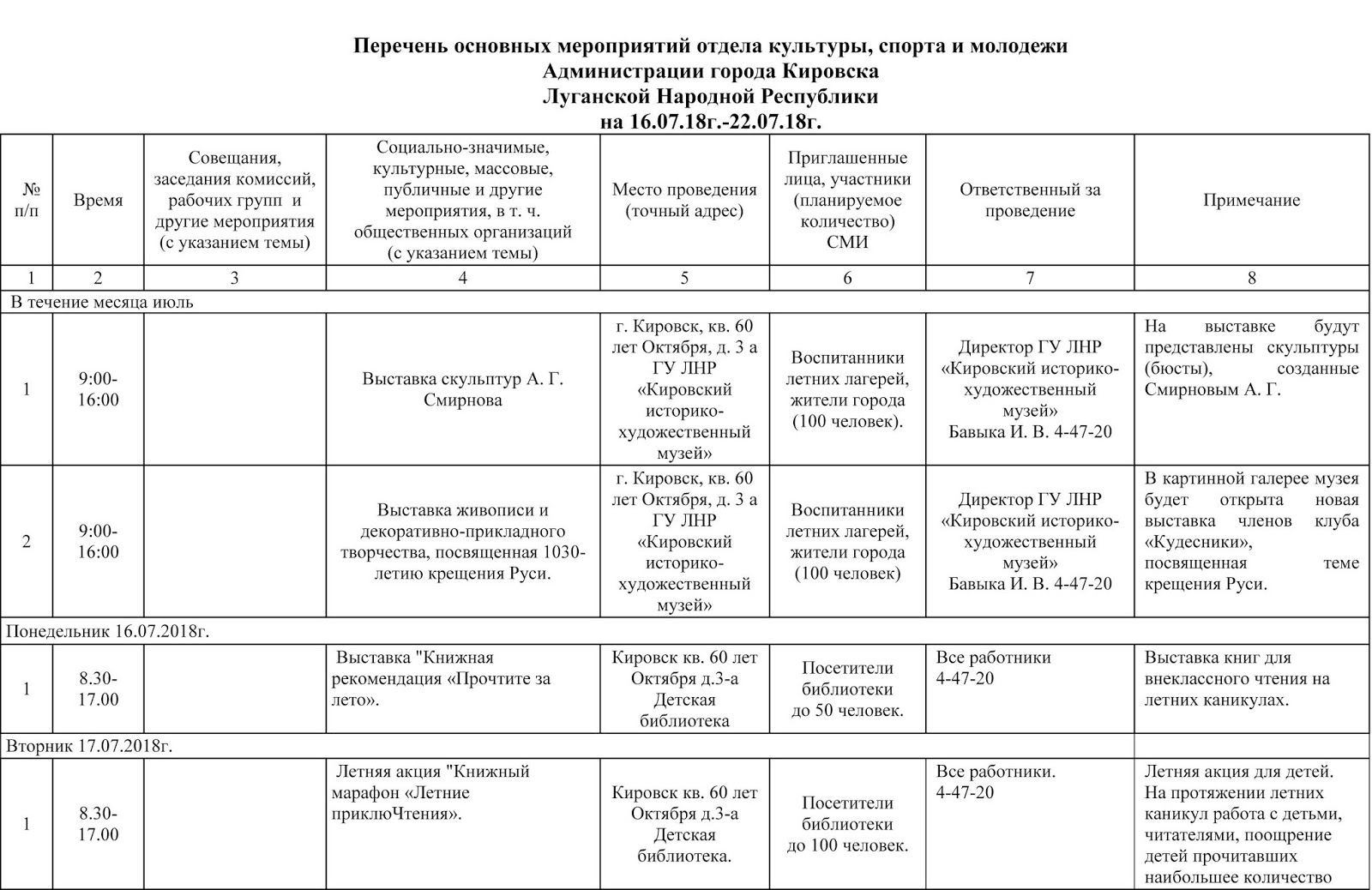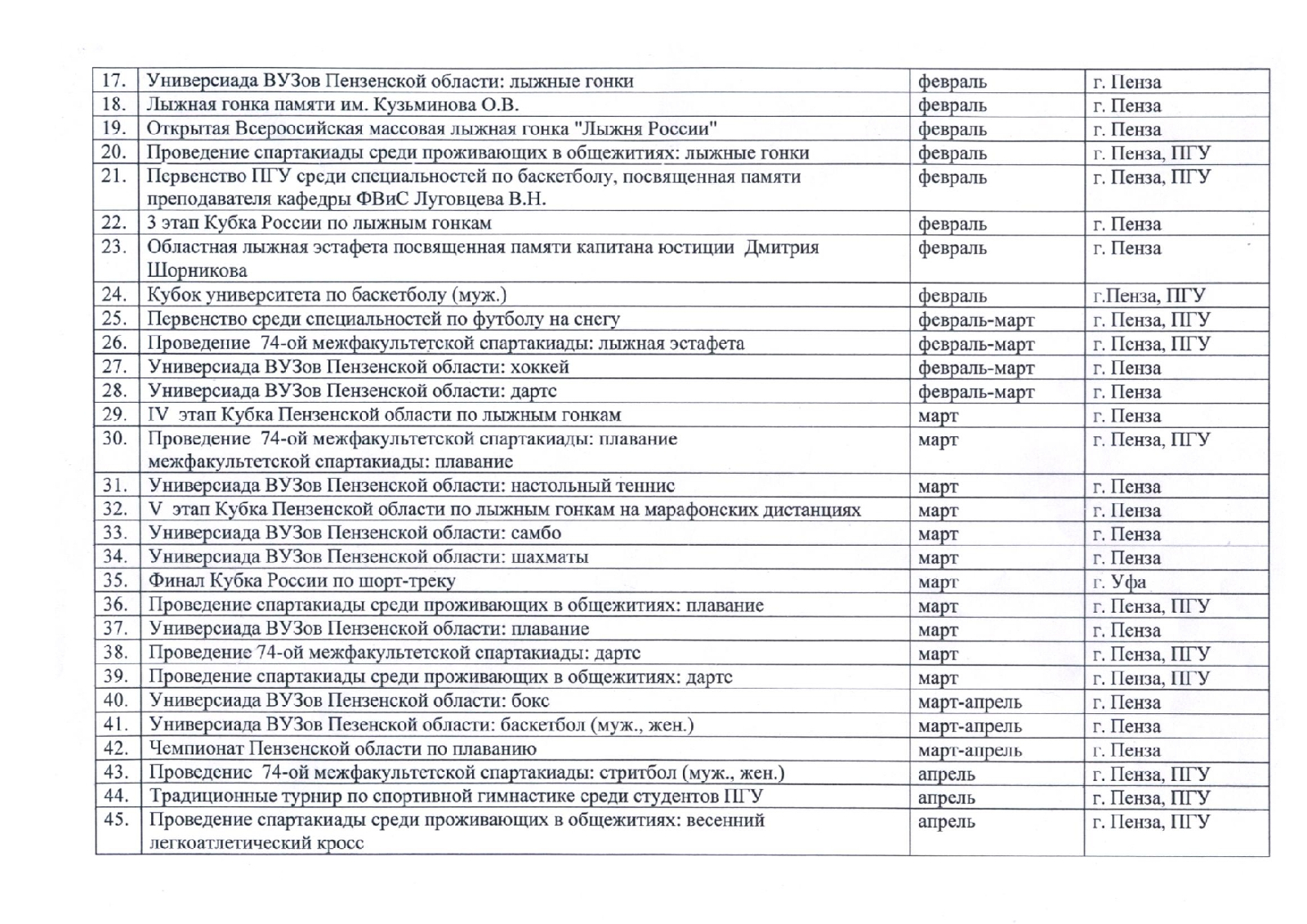 Массовые мероприятия список