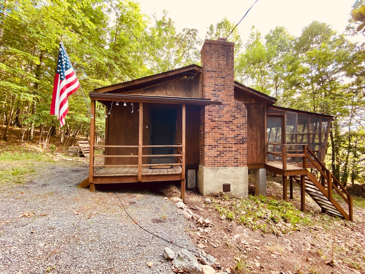 Mast in log cabin