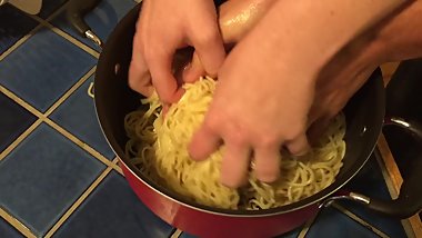 Masturbation using cooked spaghetti