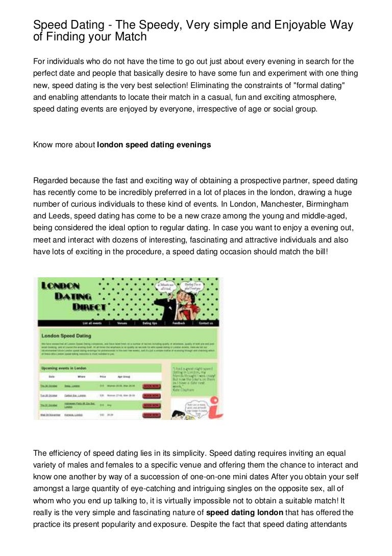 Over 80% of our speed daters get at least one match , with over half getting two or more matches . Enjoy successful Speed Dating evenings around the UK and have a fun night and speed dating like-minded single people interested in meeting you . At Speed Dating in London, you will meet many single people and have a four minute dates with each of them .