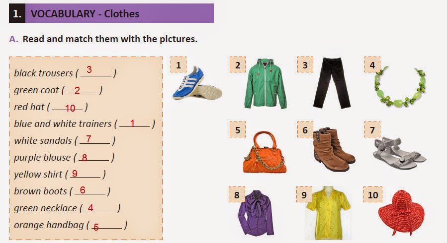 Match the pictures to the clothes