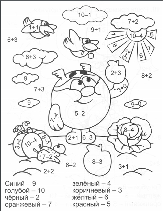 Математические Раскраски В Пределах 10 Распечатать