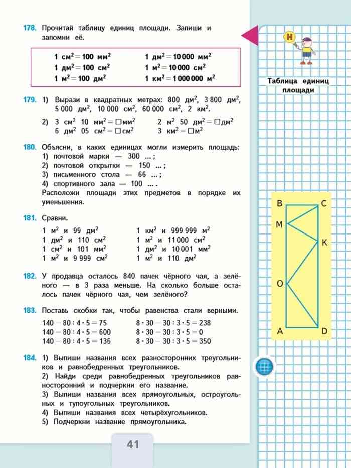 Задачи по математике 4 класс - Таблица единиц площади . . .