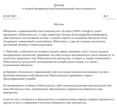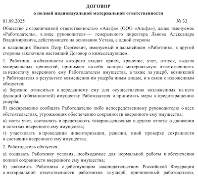 Материальный договор рк 145 фотографий