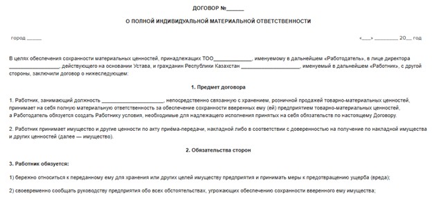 Материальный договор рк