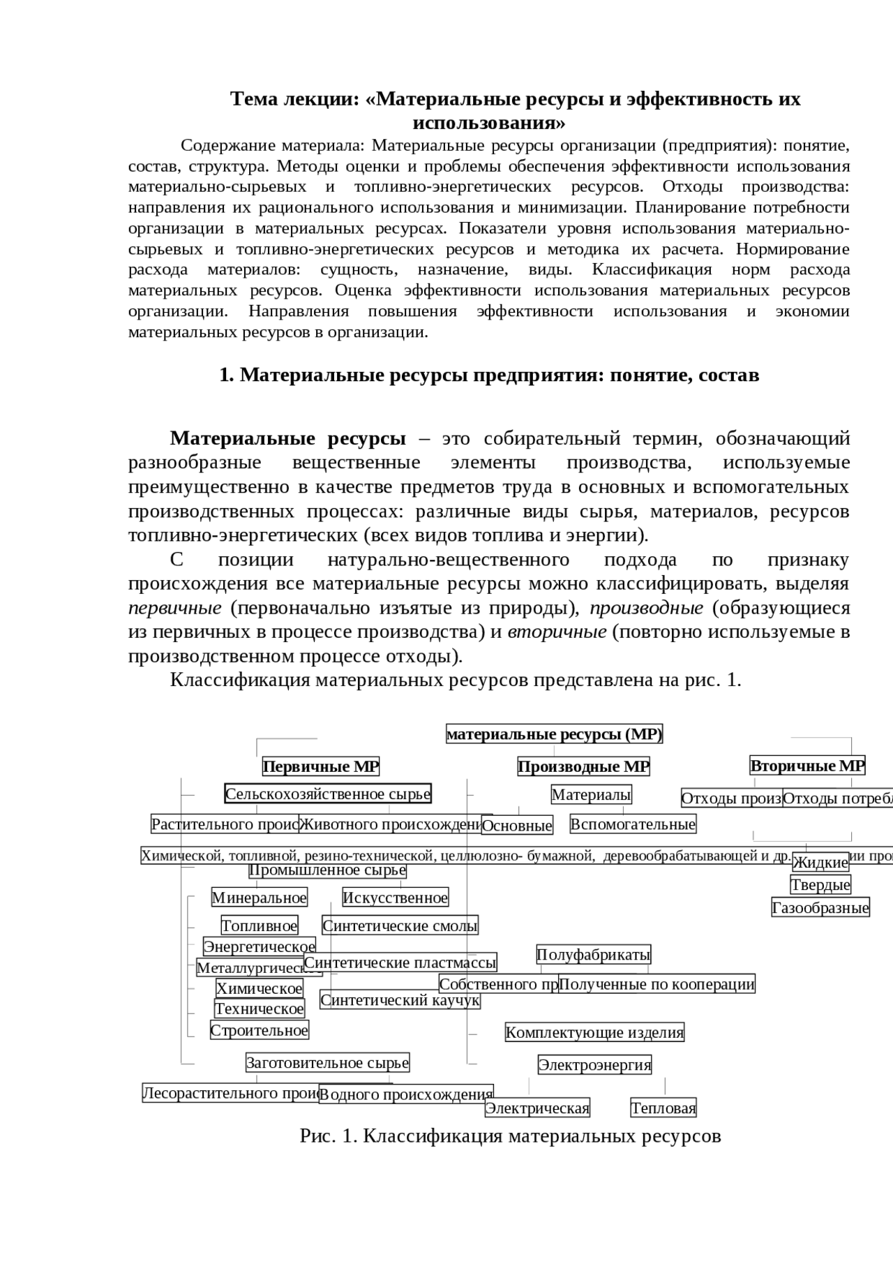 Материальный ресурс примеры