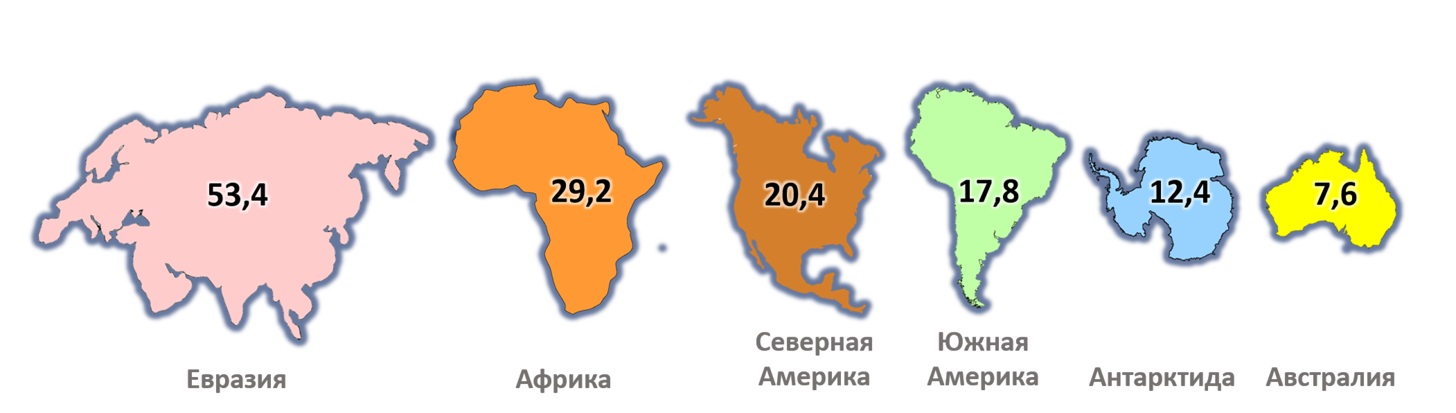 Материки по мере увеличения