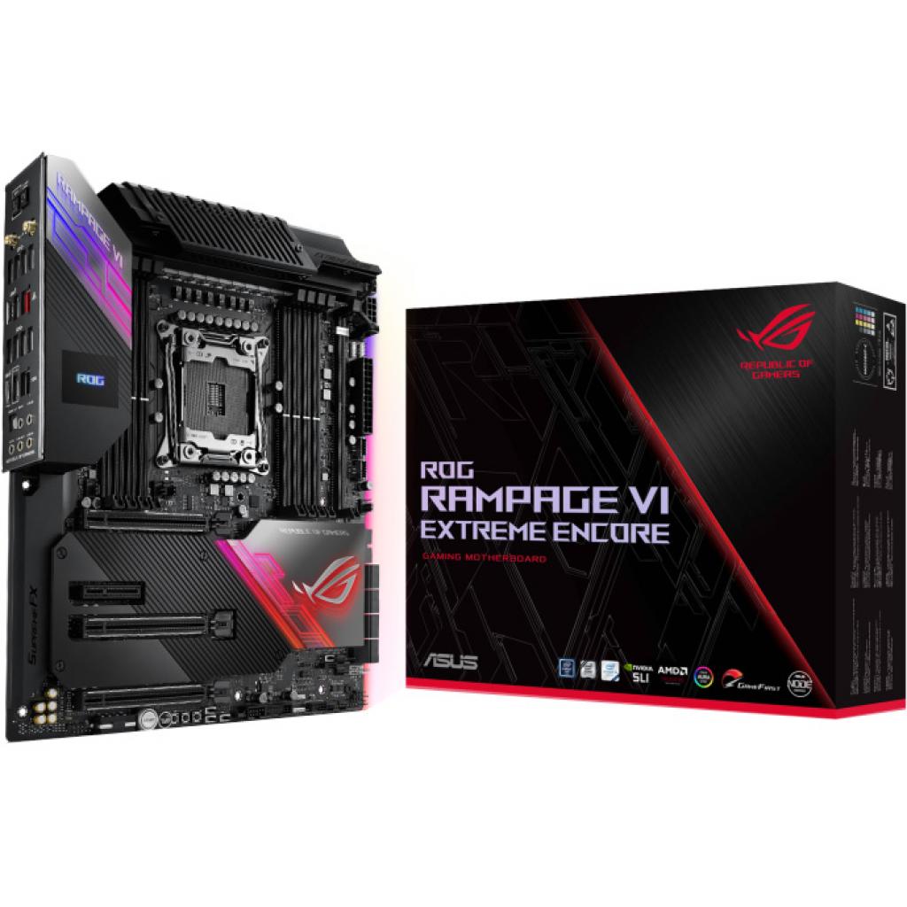ROG RAMPAGE VI EXTREME . Материнская плата форм-фактора E-ATX на базе чипсета Intel X299 со светодиодной подсветкой Aura Sync и современными интерфейсами (три порта M .2, 10G Ethernet, Wi-Fi 802 .11ad, U .2, USB 3 .1)
