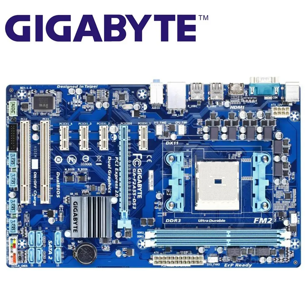 1 290грн . Купить . +380 показать номер . Интернет-магазин " Правильный Выбор " . г . Киев . Материнская плата Gigabyte GA-F2A55M-DS2 Socket FM2 (GA-F2A55M-DS2) Б\У . В наличии . 870грн .