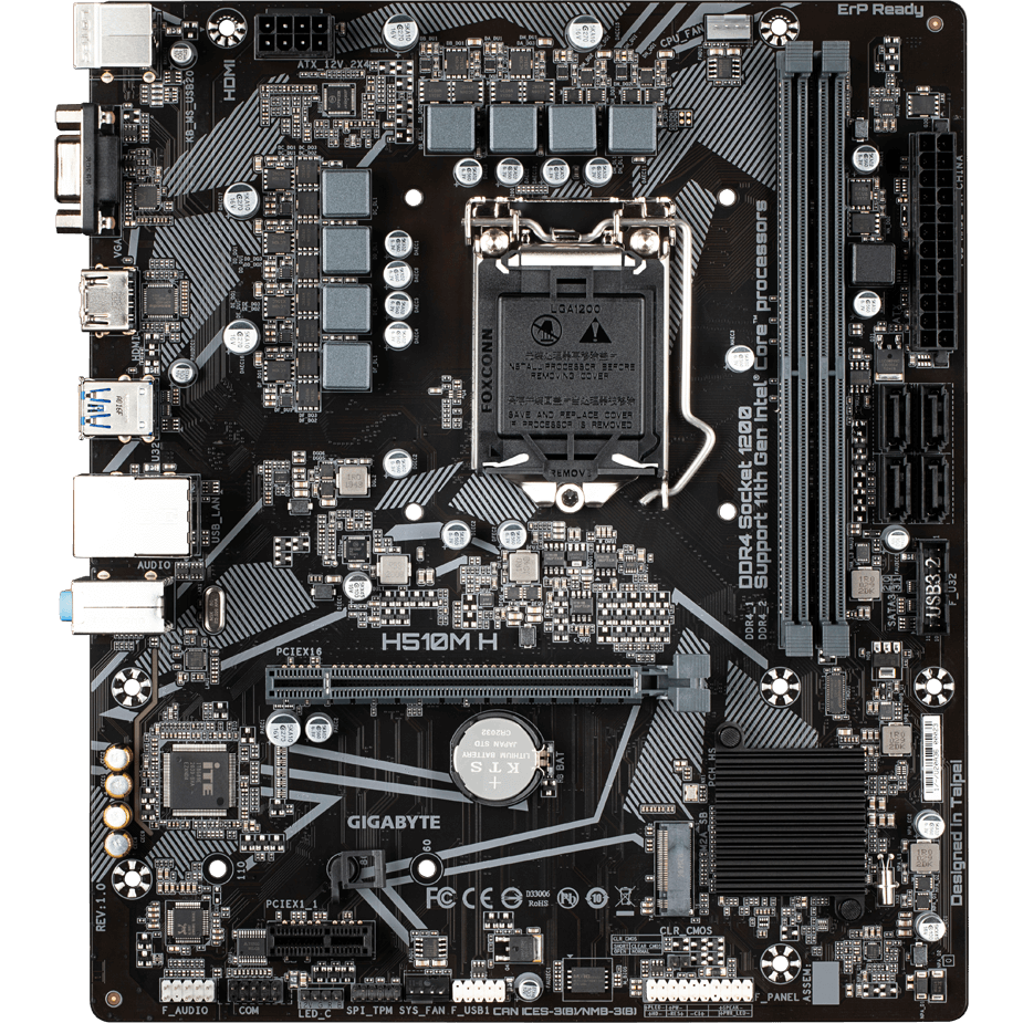 Материнская плата gigabyte h510m h станет надежным решением для сборки офисной рабочей станции . Она выполнена в форм-факторе Micro-ATX и содержит в своей основе чипсет Intel H510 с процессорным разъемом LGA 1200 .