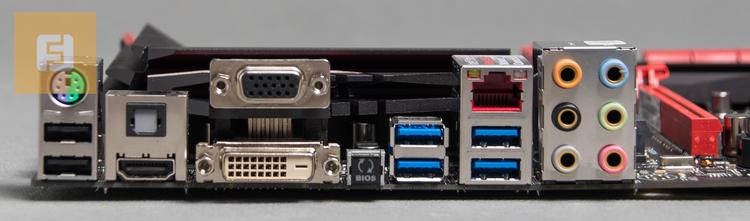 На заднюю панель ASUS Maximus VII Ranger вынесены: два USB 2 .0 и комбинированный PS/2; HDMI и оптический аудиовыход; DVI и VGA; кнопка BIOS Flashback; два USB 3 .0; еще два USB 3 .0 и сетевой порт; шесть позолоченных разъемов mini-jack .
