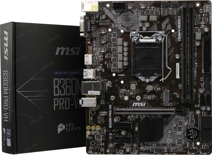 Материнская плата MSI B360M PRO -VDH . LGA 1151-v2, Intel B360, 4xDDR4-2666 МГц, 1xPCI-Ex16, аудио 7 .1, Micro-ATX подробнее . 90 99,56 44 . Код товара: 1230868 . Характеристики Материнская плата MSI B360M PRO -VDH . Заводские данные .