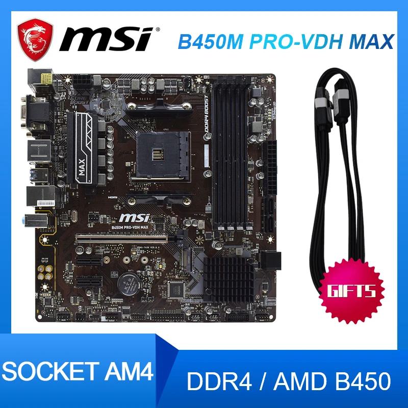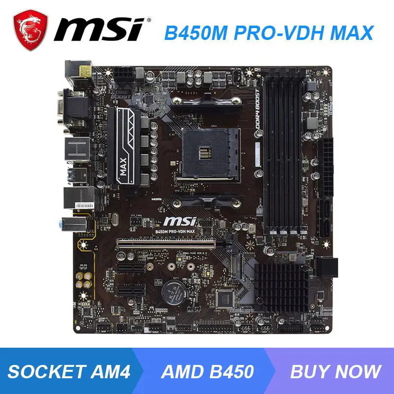 Материнская плата msi b450m pro -vdh max станет хорошим вариантом выбора для пользователей, желающих собрать недорогой универсальный домашний ПК, игровую станцию разумной стоимости или мощную офисную систему .