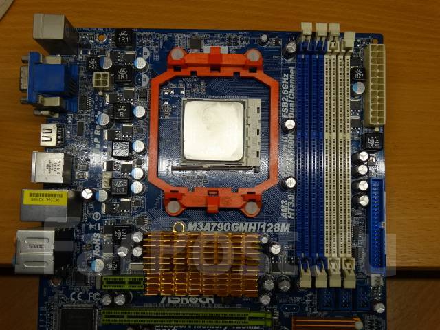 Материнская плата с процессором AMD . Материнская плата с процессором AMD Phenom и четырьмя планками памяти (кажется, 4*2Gb) Покупалось железо довольно давно, но после апгрейда отложил в шкаф и с тех пор не пользовался . Должно быть всё рабочим, впрочем, я не проверял .