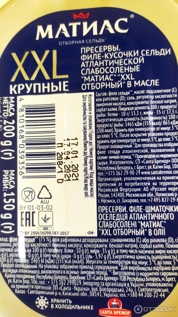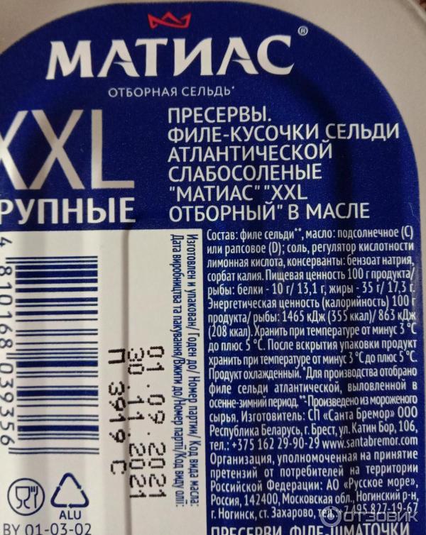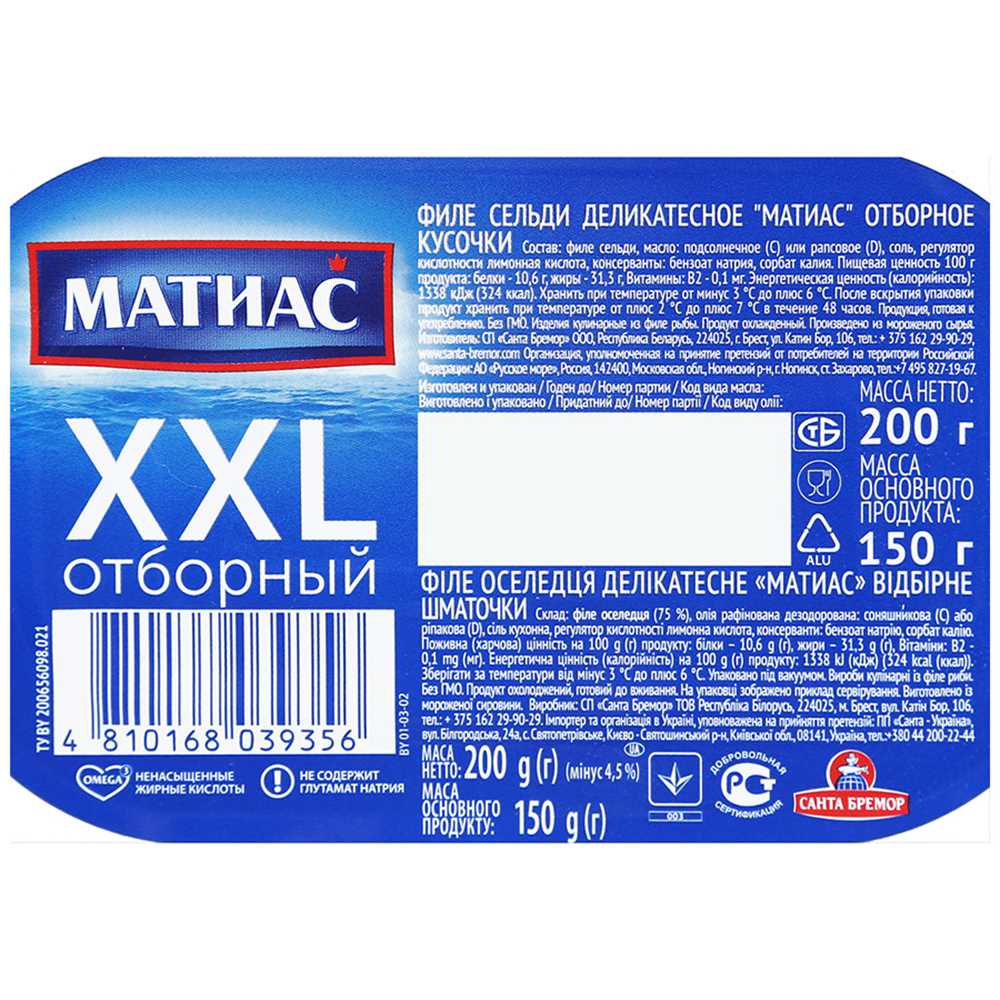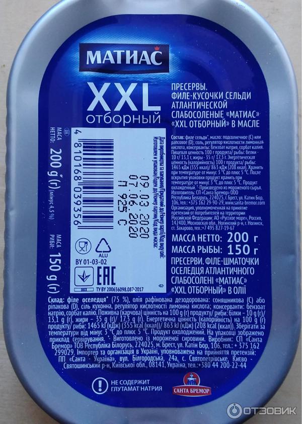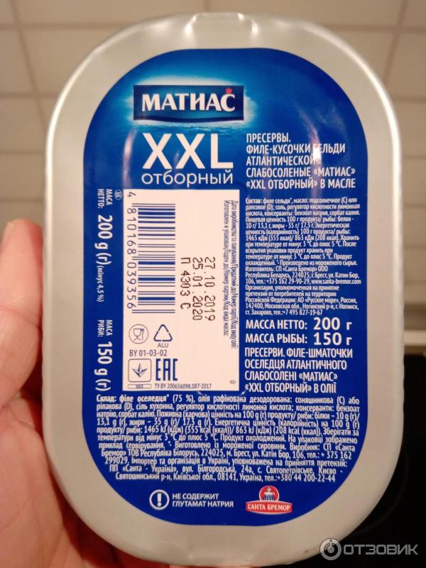 Матиас калорийность 134 фото