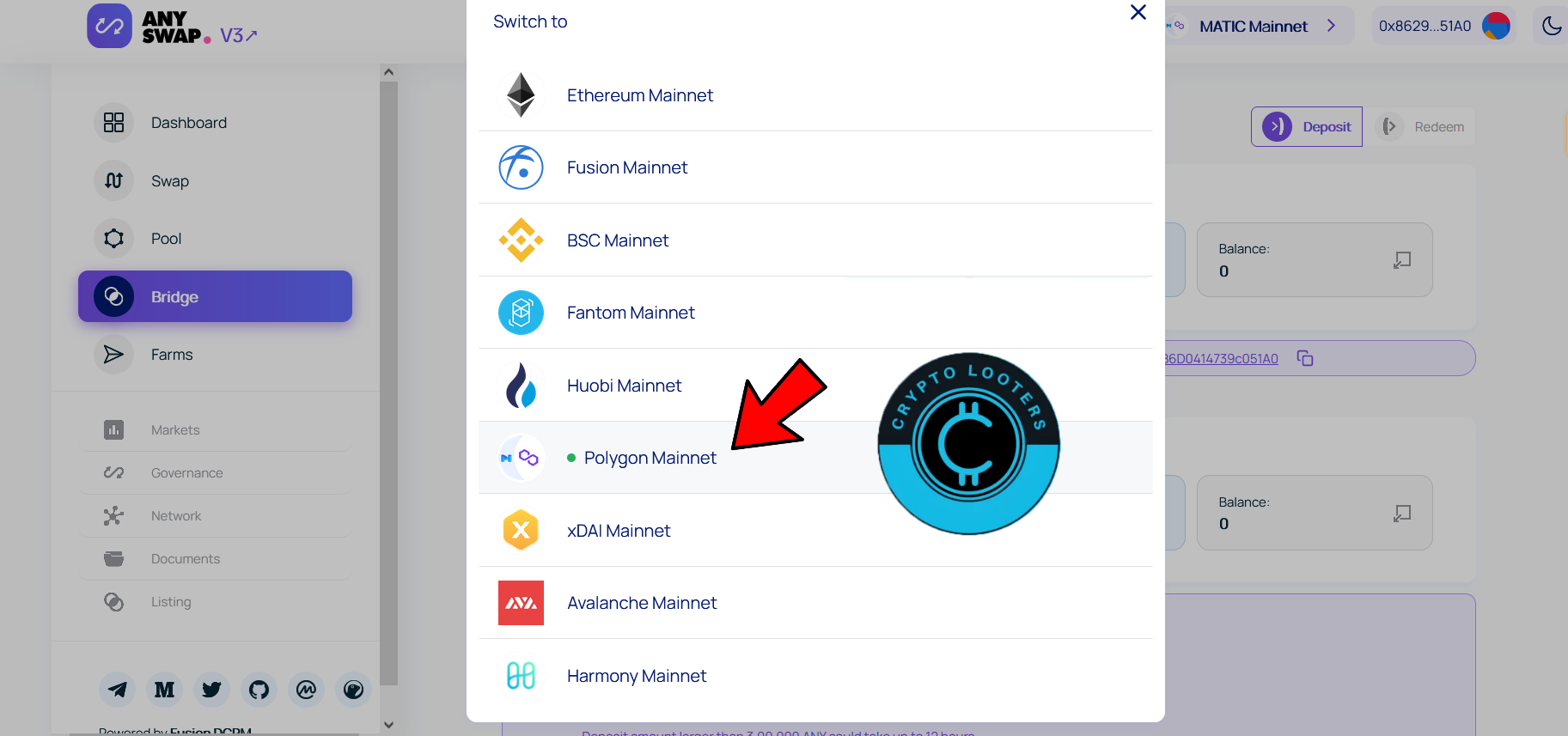 1) Go To https://anyswap.exchange/bridge