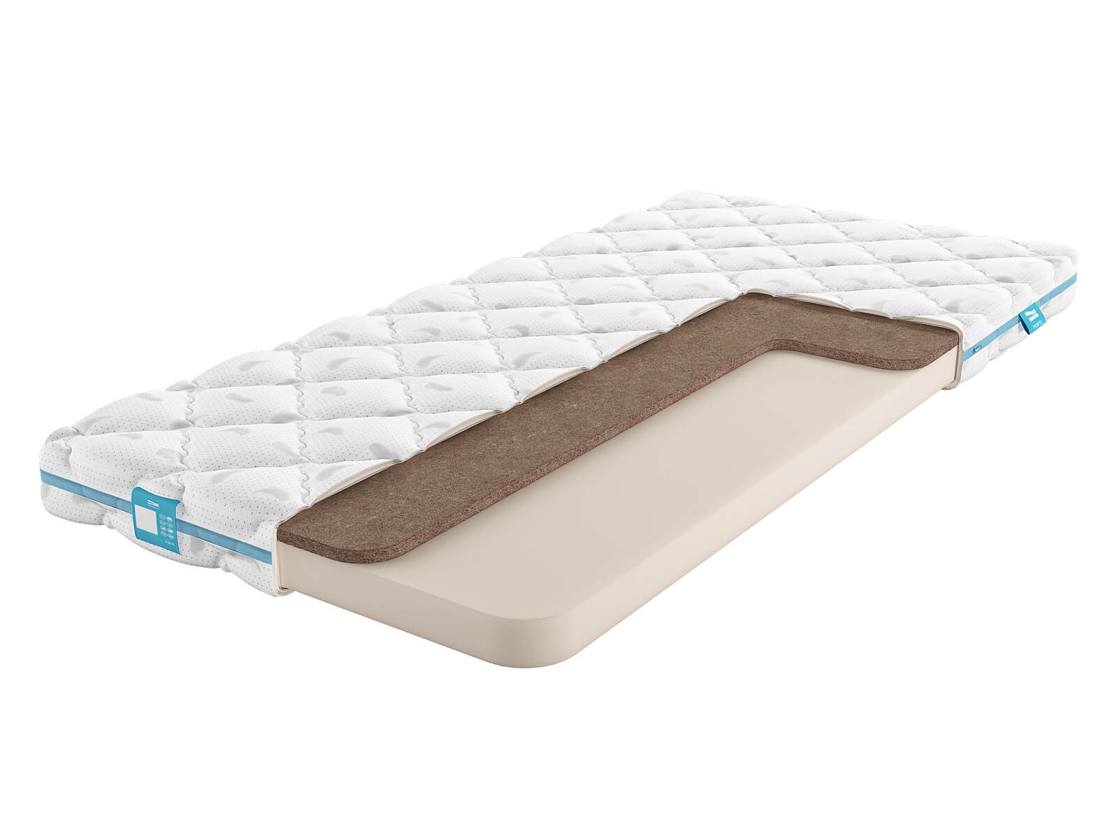 Детский беспружинный матрас из экопены и кокосовой койры. Чехол съемный на молнии. Состав чехла: детский поликоттон.