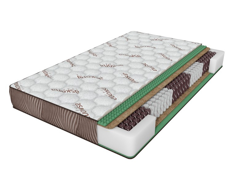 Внутренние слои матраса выстелены жесткой койрой кокоса пропитанного латексным составом. Кокос придает поверхности большей ровности и ортопедических свойств. Верхние слои изготовлены из пористой и эластичной пены OrtoFoam. Поверхность пены имеет рельефную насечку, которая обеспечивает микромассажный эффект. Матрас средней жесткости.