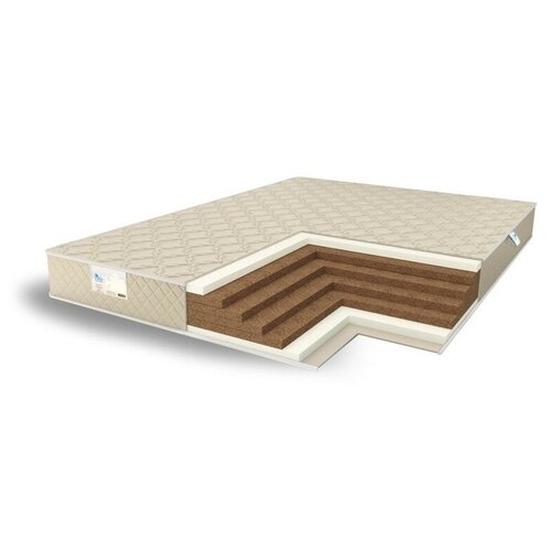 Matelas rond fiable avec une dalle en noix de coco à la base. Les couches supérieures sont en matériau artificiel moussé, élastique et confortable.