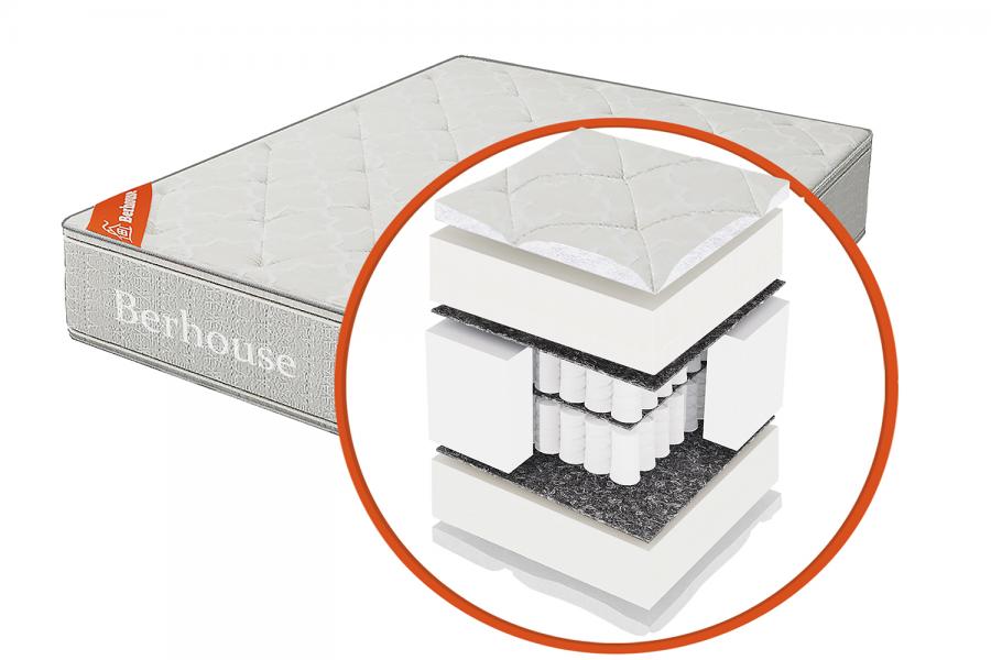 За поддержку позвоночника в правильном положении отвечает латексированная кокосовая койра. Она также обеспечивает равномерное распределение нагрузки по всей поверхности матраса. Пена состоит из большого количества ячеек разного размера. При небольшой нагрузке работают только мелкие ячейки, а при увеличении давления на спальное место в работу включаются более крупные ячейки. Пена играет роль пружинного блока и повышает комфорт во время отдыха.