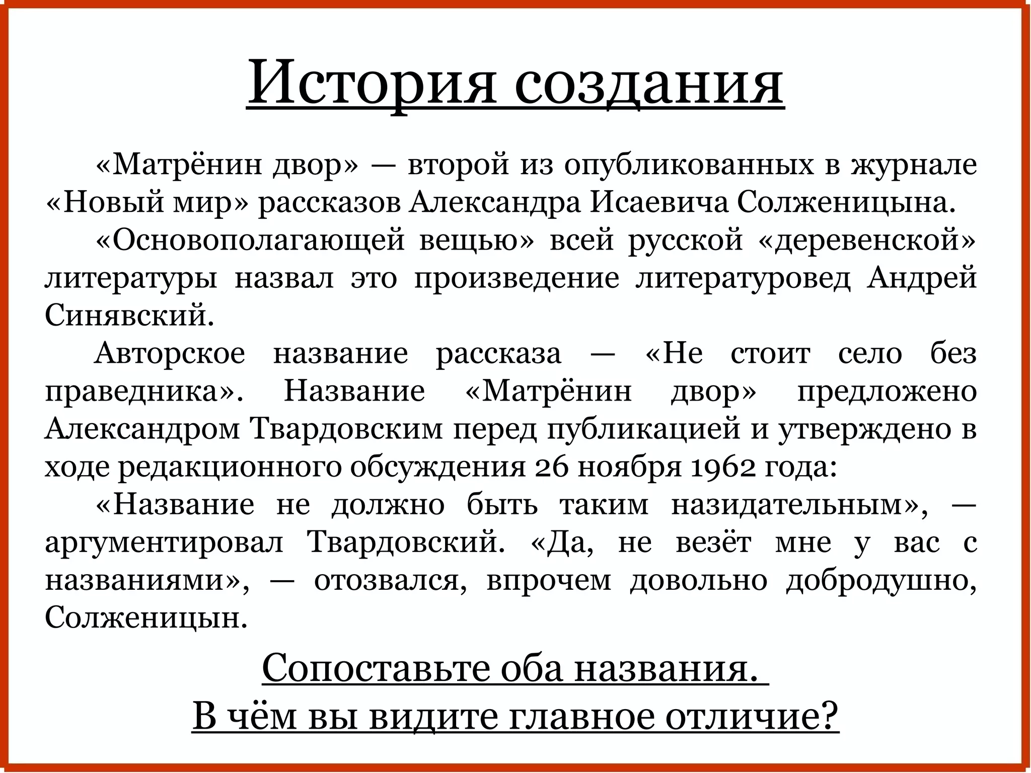 Матренин двор план 2 главы