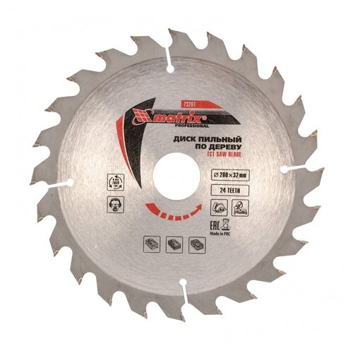 La lame de scie à bois matricielle ø200 x 32 mm 73261 avec 24 dents et bague adaptatrice 32/30 s'utilise comme accessoire sur les scies circulaires et à onglets avec les diamètres intérieur et extérieur correspondants. Il est utilisé pour la coupe longitudinale/transversale de matériaux en bois tendre et dur, panneaux de particules, panneaux de fibres, contreplaqué, panneaux lattés. Le kit comprend une bague d'adaptation 32/30 pour permettre de modifier indépendamment le diamètre d'alésage si nécessaire. AvantagesLes grandes dents à affûtage alterné garantissent une coupe rapide et de haute qualité des matériaux ; le disque est parfaitement adapté à un usage domestique et professionnel. La base est en acier 65Mn et la plaque de coupe est en alliage YG8 avec une dureté supérieure à 88 HRA, de sorte que la lame a une longue durée de vie et conserve son tranchant pendant longtemps. Les dents sont affûtées au diamant, ce qui augmente l'efficacité de coupe et augmente la durée de vie de la lame. Les fentes de compensation réduisent le risque de blocage du disque et rendent la coupe aussi précise et stable que possible.