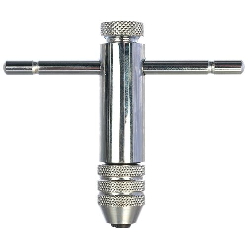 Tourne-taraud chromé Matrix 76905, M3-M8, avec cliquet, conçu pour la coupe manuelle des filetages intérieurs dans les trous et pièces cylindriques. Convient aux tarauds avec filetages M3, M4, M5, M6, M7 et M8. La clé est utilisée lors de la réparation des connexions filetées et est utile dans un atelier ou un garage. Avantages Le tournevis est fabriqué en acier à outils à haute résistance, ce qui signifie qu'il peut supporter des charges importantes. Grâce au chromage, l'outil n'est pas sensible à la corrosion. La présence d'un mécanisme à cliquet et d'une fonction d'inversion facilite le filetage et le retrait des tarauds. La possibilité de modifier la longueur du bras vous permet d'ajuster la quantité de couple et de travailler dans des endroits difficiles d'accès.La clé est utilisée lors de la réparation des connexions filetées et est utile dans un atelier ou un garage. Avantages : - Le tournevis est fabriqué en acier à outils à haute résistance, ce qui signifie qu'il peut supporter des charges importantes ; - Grâce au revêtement chromé, l'outil n'est pas sujet à la corrosion ; - La présence d'un mécanisme à cliquet et d'une fonction d'inversion facilite le filetage et le retrait des tarauds ; - La possibilité de modifier la longueur du bras vous permet d'ajuster la quantité de couple et de travailler dans des endroits difficiles d'accès. Conçu pour la coupe manuelle des filetages internes dans les trous et les pièces cylindriques. Matériau : acier ; Filetage : M3 - M8.