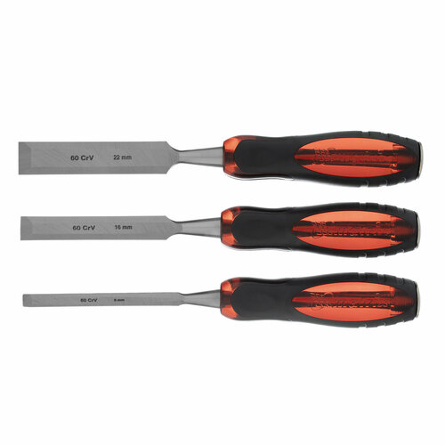 "Un jeu de ciseaux-ciseaux plats Matrix "Oeil de Tigre" 24431, 3 pièces 8-16-22 mm, est utilisé pour le traitement du bois de toutes essences. Les ciseaux permettent de sélectionner des rainures, de réaliser des évidements, des chanfreins, des gouges de différentes largeurs . Les poignées en plastique résistant aux chocs ont une plaque de couche en métal et peuvent résister aux coups avec un maillet ou un marteau pour couper facilement le bois de toute dureté. L'ensemble sera utile pour les menuisiers, les menuisiers et les fabricants de meubles. Avantages • Résistance accrue - ciseaux fabriqués. en acier à outils en alliage CrV ont une tige métallique traversante et peuvent facilement résister aux charges d'impact.• Résistance à l'usure - la dureté des 2/3 de la partie active de la lame est de 60 HRC, de sorte que les outils conservent leurs propriétés opérationnelles pendant une longue période.• Capacité de coupe élevée - les bords de travail sont affûtés comme un rasoir sous un angle de 20 à 35° et ne nécessitent pas de réaffûtage pendant 6 à 12 mois.• Prise fiable - Les poignées à deux composants en plastique et en caoutchouc ont une rainure surface et ne glisse pas de la paume.Un ensemble de ciseaux plats est utilisé lors du traitement du bois de toutes essences. Les ciseaux vous permettent de sélectionner des rainures, de réaliser des évidements, de chanfreiner et de creuser des trous de différentes largeurs. Des poignées en plastique résistantes aux chocs et une plaque de couche en métal vous permettent d'utiliser un maillet ou un marteau pour couper facilement du bois de n'importe quelle dureté. L'ensemble sera utile aux menuisiers, charpentiers et fabricants de meubles. Avantages : les ciseaux sont fabriqués en acier à outils en alliage CrV à haute résistance et peuvent facilement résister aux charges d'impact ; - Une tige métallique traversante augmente la solidité de l'outil et assure une longue durée de vie ; - La dureté des 2/3 de la partie travaillante de la lame est de 60 HRC, les outils conservent longtemps leur capacité de coupe, vous permettant d'obtenir les coupes les plus uniformes ; - Les tranchants sont affûtés comme un rasoir sous un angle de 20 à 35° et ne nécessitent pas de réaffûtage pendant 6 à 12 mois ; - Les poignées à deux composants en plastique et en caoutchouc ont une surface ondulée, elles tiennent donc confortablement dans la main du maître et ne glissent pas dans la paume. Conçu pour le traitement du bois, le décapage et l'élimination des nids, des rainures, des tenons et des chanfreinages. Matériau de la lame : acier au chrome vanadium ; Matériau du manche : plastique ; Longueur de la lame : 138 mm ; Largeur de lame : 8, 16, 22 mm ; Quantité : 3 pièces.