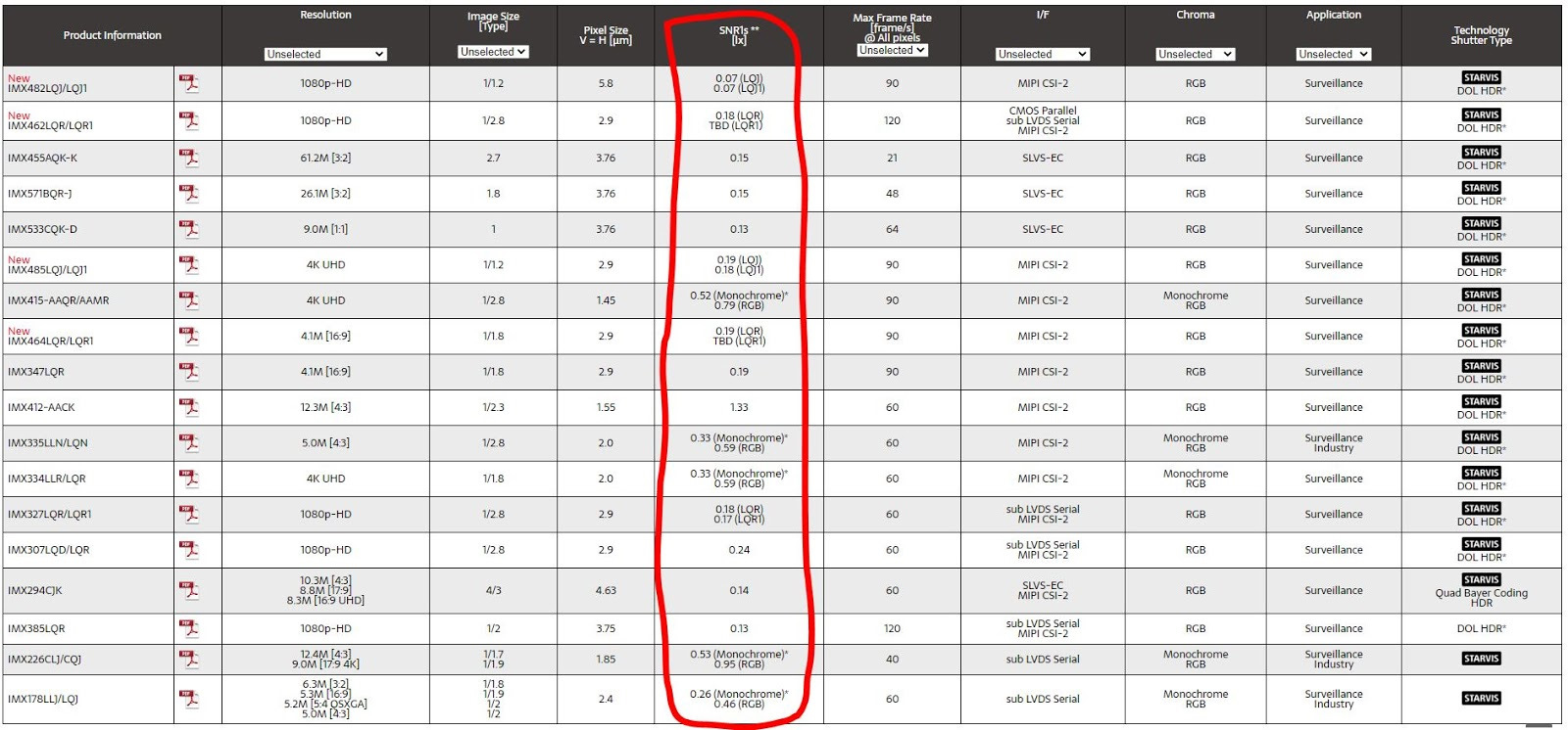 Матрицы sony imx