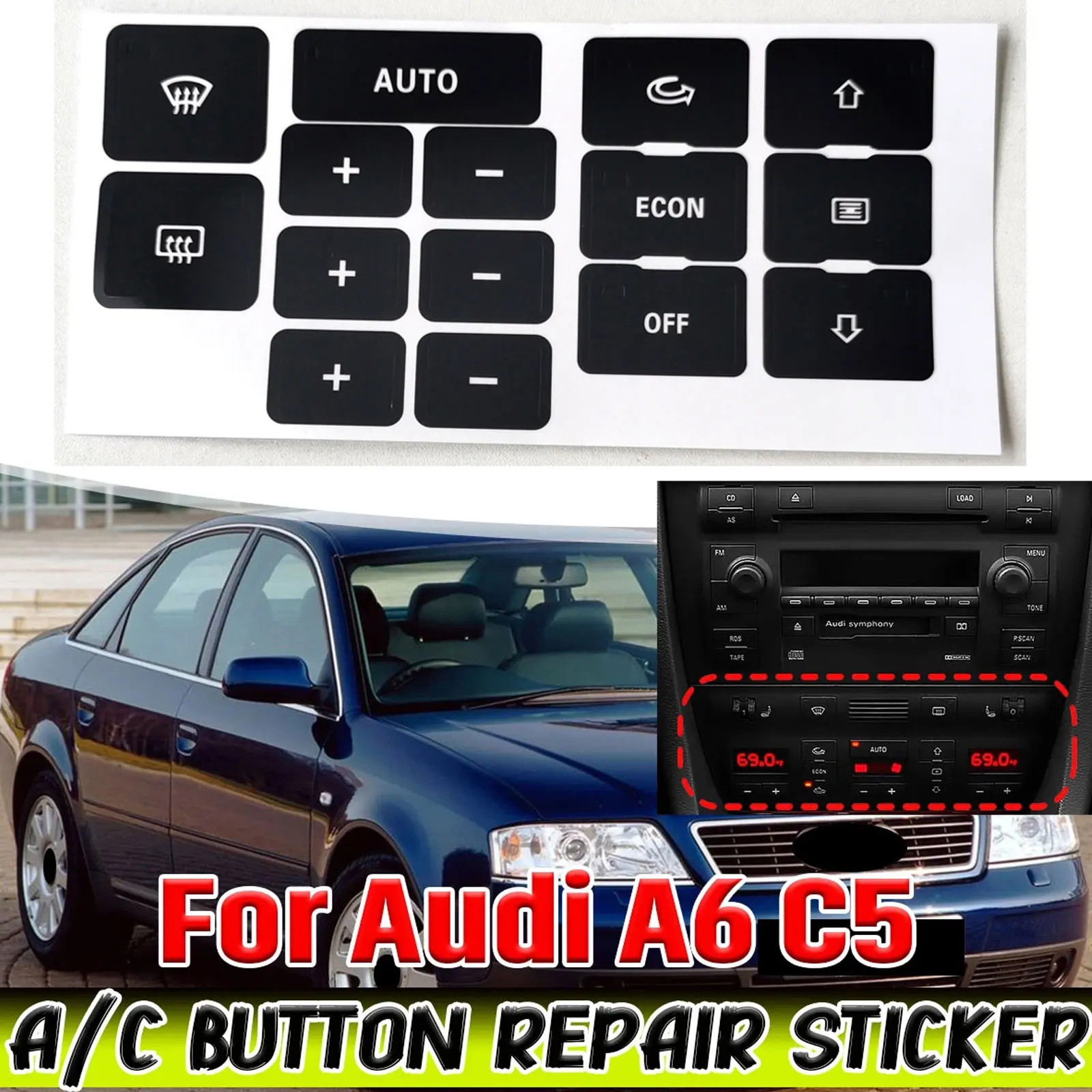 Matte Black Air Heater Control Button Sticker for Audi A6 C5 A/C For Audi A6 C5 Heater AC Climate Control Button Repair Decals - Купить с бесплатной доставкой