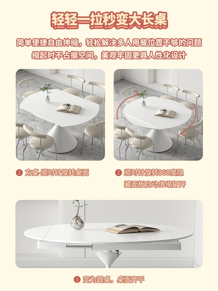 yulYsVMWIHere you can buy Matte Surface Stone Plate Dining Table Rotary Multifunctional Telescopic Deformation Square and Round Dual-Use Household Table with free delivery to your post office.