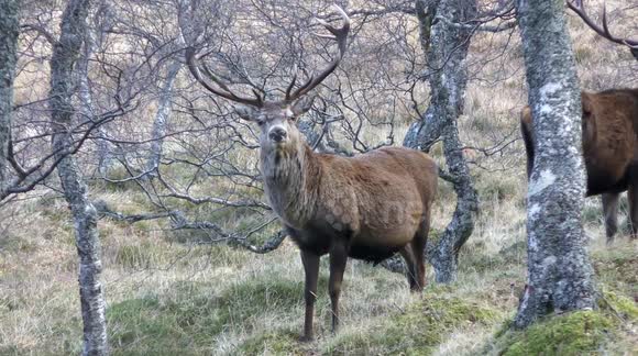 Hind groups consist of a dominant hind, her dependent offspring, and her mature daughters with their offspring, all sharing over-lapping ranges. In contrast, stag groups are less stable and comprise unrelated individuals. Group-size of red deer occupying woodland habitats tends to be smaller than those of the open hill.