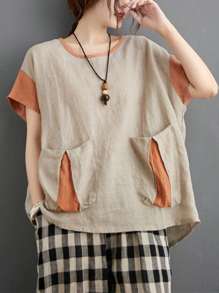 "Max LuLu 2022 Japanese Design Summer Ladies Patchwork Vintage Linen Blouses Womens Casual Style Pockets Shirts Short Sleeve Tops" * Buy Now Just For 19$