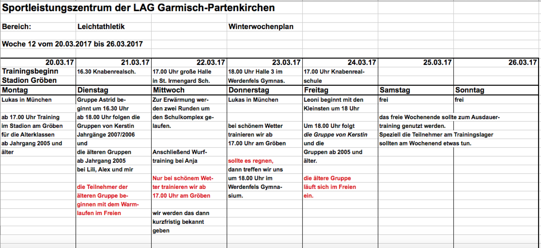Max' neuer Trainingsplan