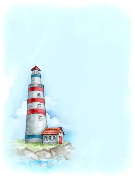 Нарисовать маяк будет довольно просто . Вооружитесь карандашом, бумагой и линейкой . Так же Вам может пригодиться схема поэтапного рисования, которую я выложу ниже . Вообще, маяк . . .