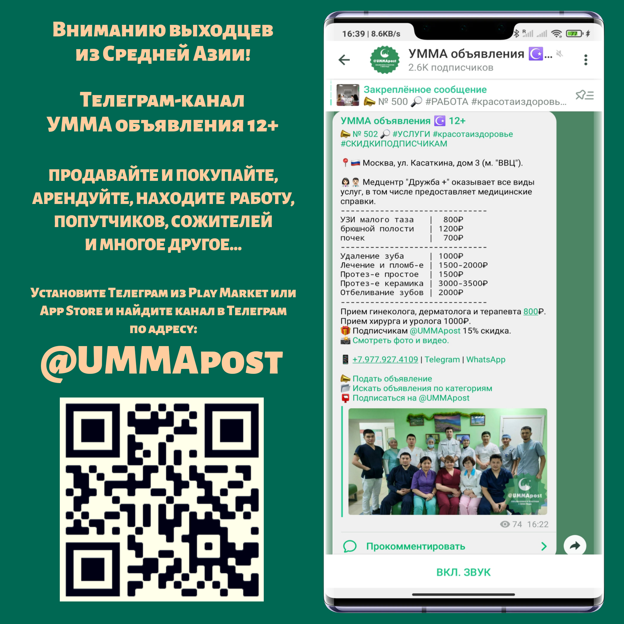 @UMMApost - это объявления выходцев и для выходцев из Средней Азии. Подпишитесь чтобы не пропустить!