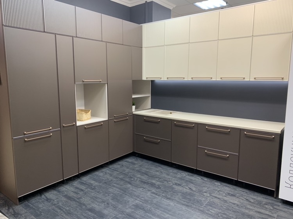 Кухня МДФ ПЛ-010 в пластике Arpa В конце февраля 2020 года к нам обратились жители г .Озеры, Московской области . Большой семье требовалась новая кухня в коттедж .