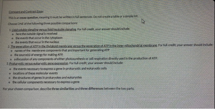 One of the most common is the comparison/ contrast essay , in which you focus on the ways in which certain things or ideasβusually two of themβare similar to (this is the comparison) and /or different from (this is the contrast ) one another . By assigning such essays , your instructors are encouraging you to make connections between texts or . . .