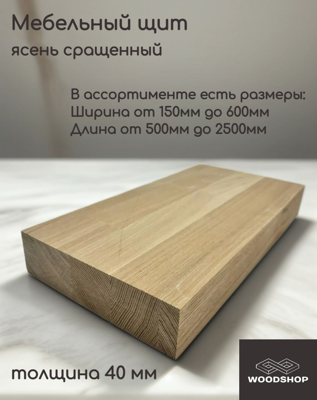 Мебельный щит ясень 40 мм