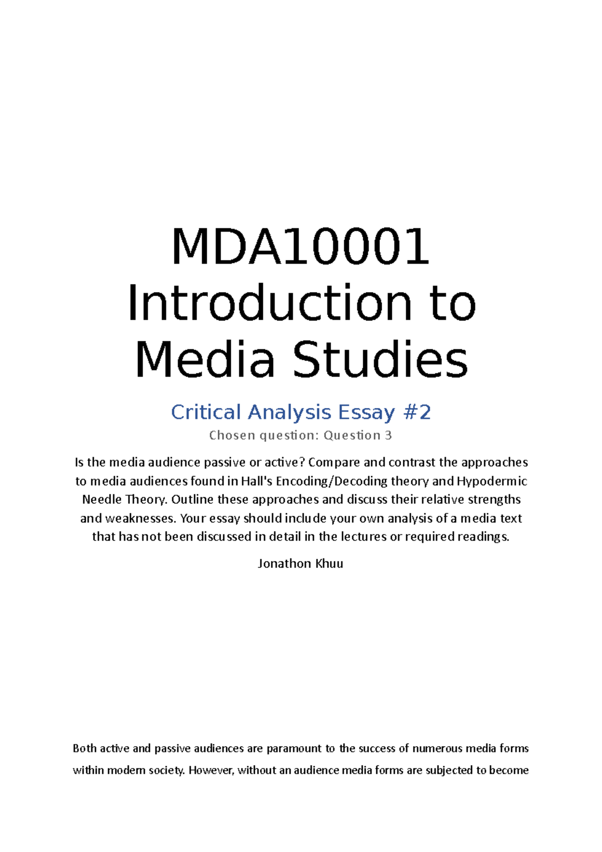 Media Analysis Essay Free Essay Example