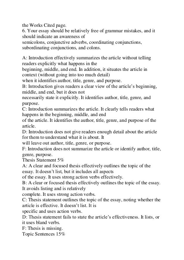Essay Rubric Elementary School