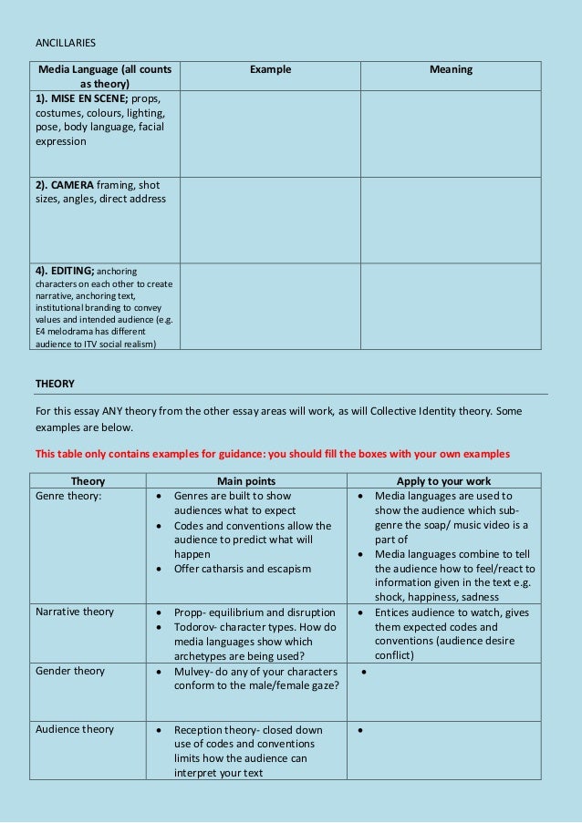 1b . Media Languages essay plan and theory