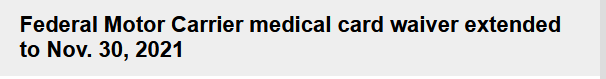 FMCSA имеет отказ от требования(для МЕС) с марта 2020 года, чтобы позволить владельцам коммерческих водительских прав, подпадающим под федеральные правила, продолжать иметь права на коммерческое вождение с просроченными сертификатами.